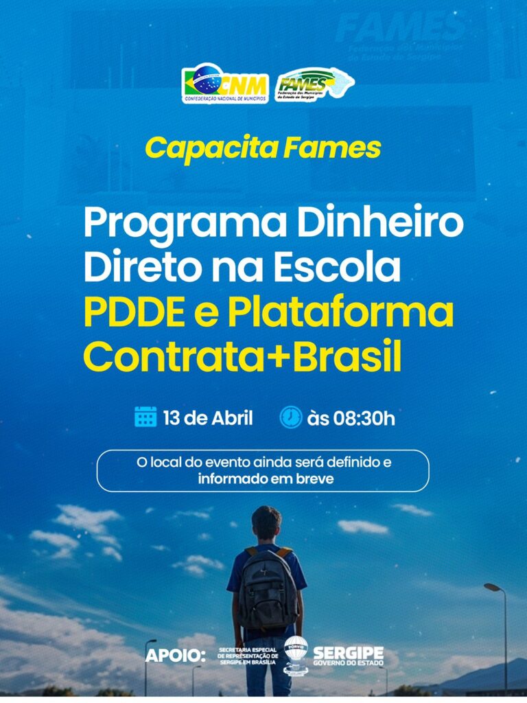 O Capacita FAMES traz um tema essencial para o dia a dia das escolas: o Programa Dinheiro Direto na Escola (PDDE), aliado à Plataforma Contrata+Brasil, uma solução que permite mais agilidade e praticidade para contratações de serviços, especialmente pequenos reparos e manutenções, com possibilidade de contratação de microempreendedores individuais (MEIs).