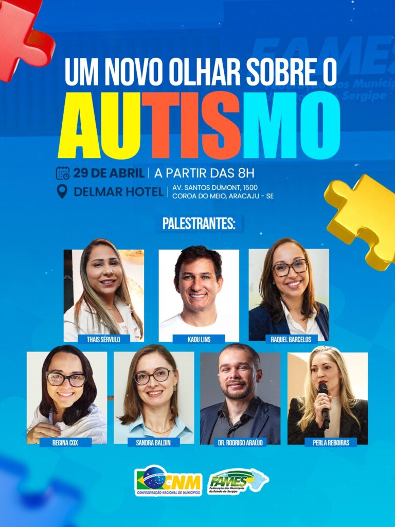 No mês dedicado à conscientização sobre o autismo, o Abril Azul, a Federação dos Municípios do Estado de Sergipe realiza, nesta quarta-feira, 29, o evento “Despertar Inclusivo: um novo olhar sobre o autismo”, reunindo especialistas e gestores municipais no Delmar Hotel, em Aracaju. A programação acontece das 8h às 17h30 e marca a primeira iniciativa da entidade voltada exclusivamente à temática do autismo.